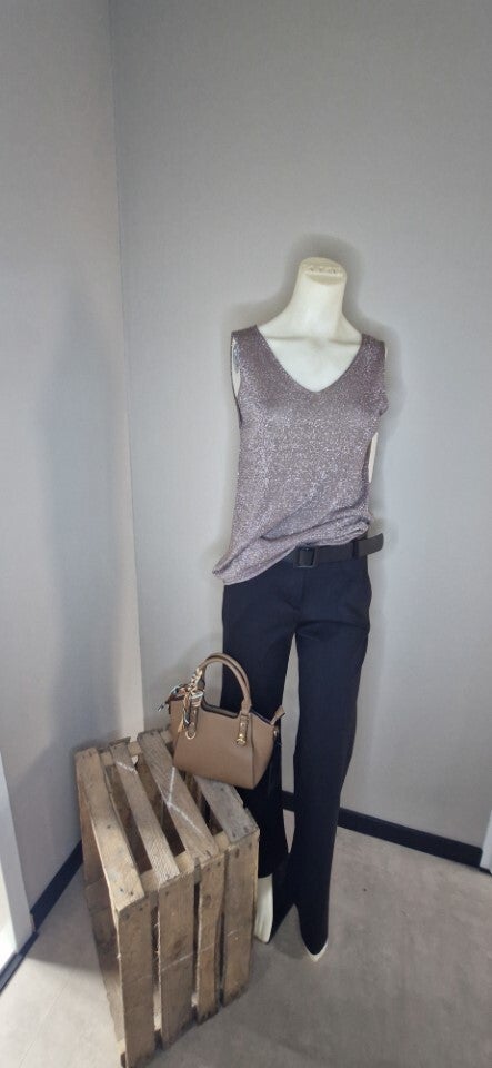 Dit super leuke topje draag je onder je colbertje of onder een vestje. Met het leuke lurex draadje krijg je een leuke glitter effectje.