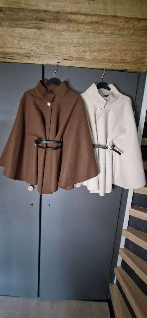 Deze prachtige poncho is afgewerkt met een mooi zwart riempje en gouden knoopje. Heerlijk tijdens de gure herstdagen.